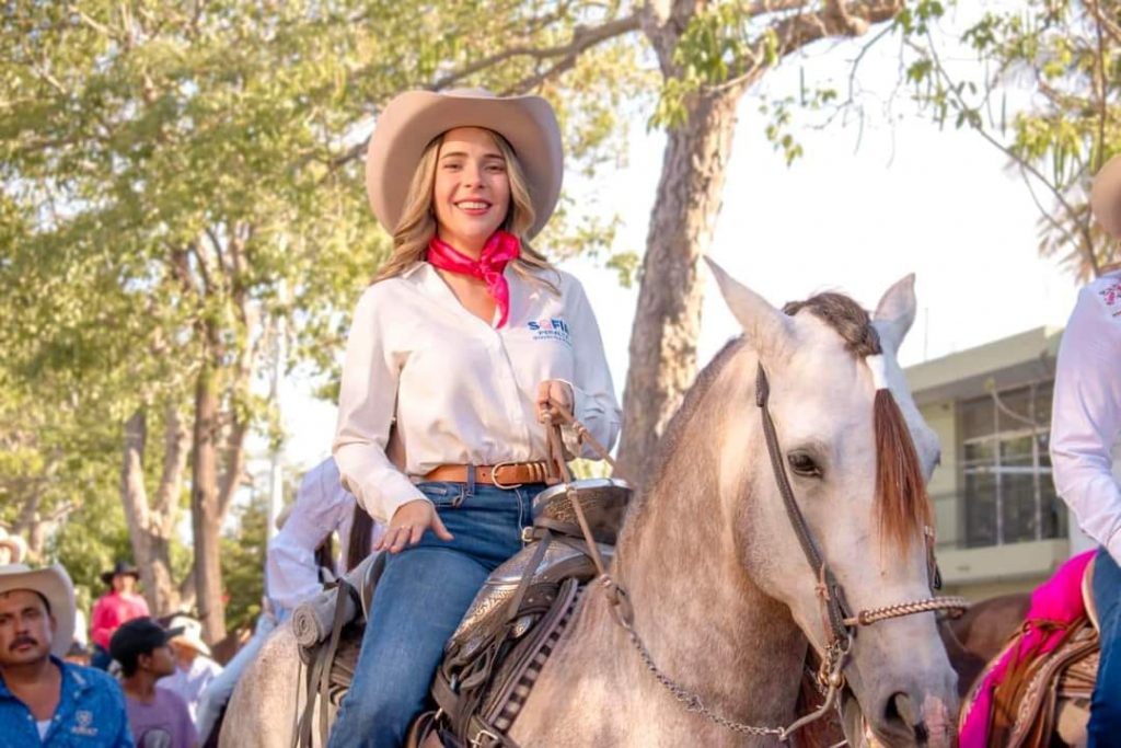 Sofía Peralta lleva el gusto por los caballos en la sangre, pues desde hace algunos años participa en las tradicionales cabalgatas que se realizan durante los Festejos Charrotaurinos,disfrutando así de su más grande pasión que es montar a caballo.