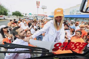 Álvarez Máynez acompañó a Mariana Rodríguez en el arranque de campaña por la alcaldía de Monterrey, Nuevo León.