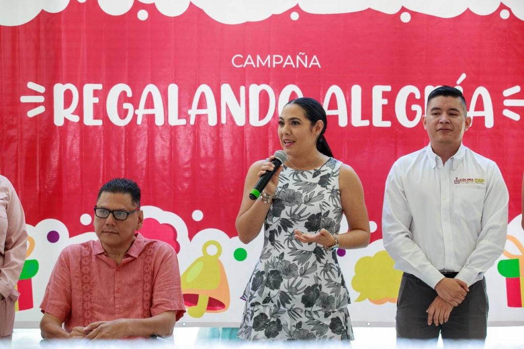 La gobernadora Indira Vizcaíno Silva y el encargado de despacho de la Dirección General del DIF Estatal Colima, Rafael Contreras Ochoa, pusieron en marcha este lunes la campaña Regalando Alegría. La mandataria colimense recordó que el año pasado se recolectaron mil 600 juguetes, por lo que este año 2024 se buscará juntar 2 mil; «en la medida que transmitamos este sentimiento de compartir, lo vamos a lograr y vamos a sentir todas y todos, una gran satisfacción», aseguró.