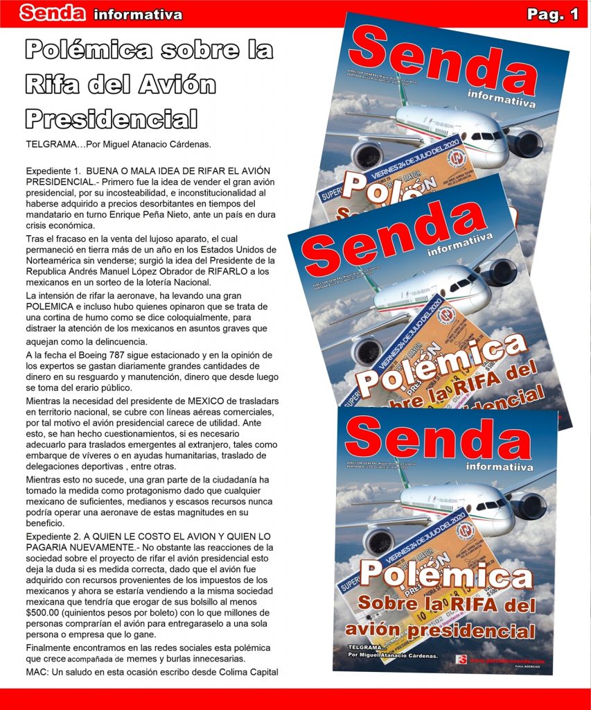 Expediente 1. BUENA O MALA IDEA DE RIFAR EL AVIÓN PRESIDENCIAL.- Primero fue la idea de vender el gran avión presidencial, por su incosteabilidad, e inconstitucionalidad al haberse adquirido a precios desorbitantes en tiempos del mandatario en turno Enrique Peña Nieto, ante un país en dura crisis económica.