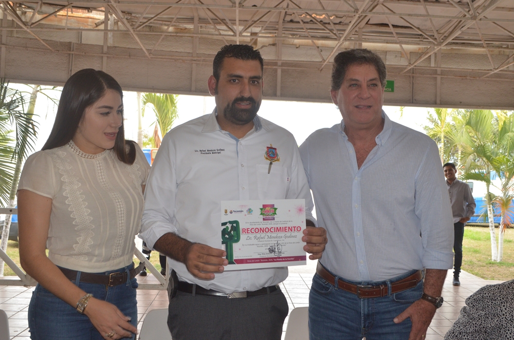 - Recibió el reconocimiento del alcalde Elías Lozano, por la solidaridad y el apoyo que siempre ha brindado a Tecomán el alcalde de Cuauhtémoc.