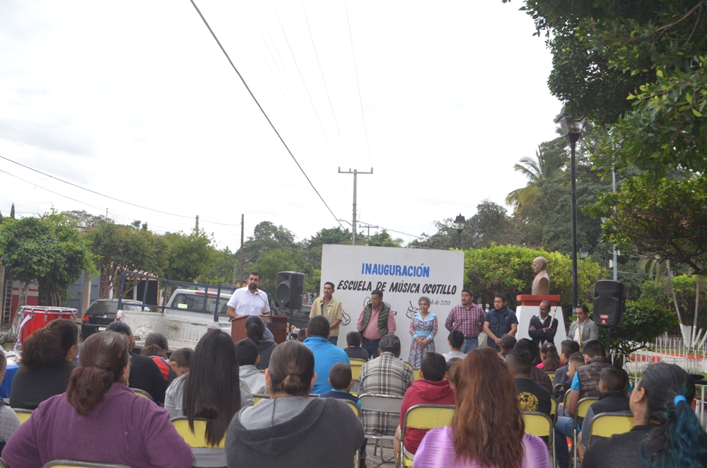 Acompañado del comisario municipal de Ocotillo, David Alcaraz; del director de Educación Cultura y Deporte, Omar Alejandro Lizama Rodríguez; del director de Atención y Participación Ciudadana, doctor David García; de la presidenta de la comisión de Educación y Cultura, regidora Martha Arcelia Rodríguez Ramírez; y funcionarios y colaboradores, inauguró una escuela de música que así fortalece la cultura y reafirma la tradición educativa que distingue esta comunidad, en donde su administración estará dando todo el respaldo apoyando con un maestro que imparta clases de iniciación musical.