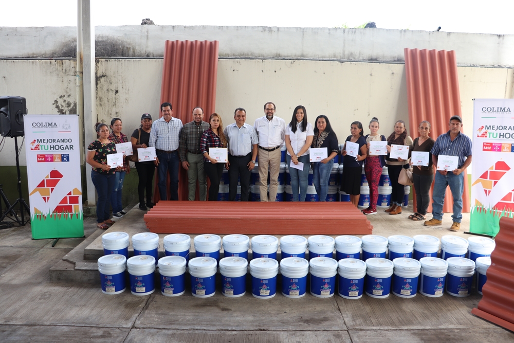 En la Casa Ejidal de la ciudad de Villa de Álvarez, el alcalde y el titular del Ejecutivo Estatal hicieron entrega de lámina, pintura e impermeabilizante a estas familias de las comunidades de El Naranjal, La Lima, Juluapan, El Mixcuate, Pueblo Nuevo y Agua Dulce, y de algunos puntos del municipio de Colima.