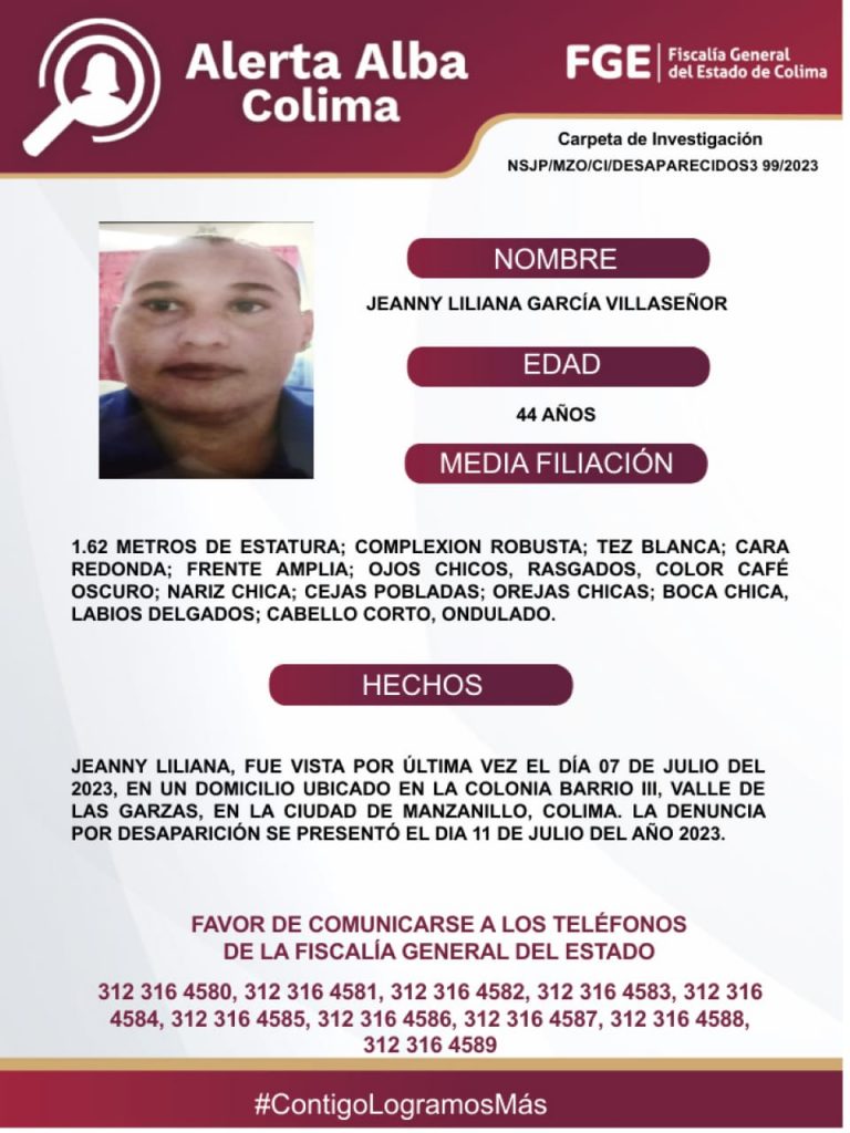 Favor de comunicarse a los teléfonos de la Fiscalía General del Estado. 312 316 45 83, 312 316 45 84, 312 316 45 85, 312 316 45 86, 312 316 45 87, 312 316 45 88, 312 316 45 89.