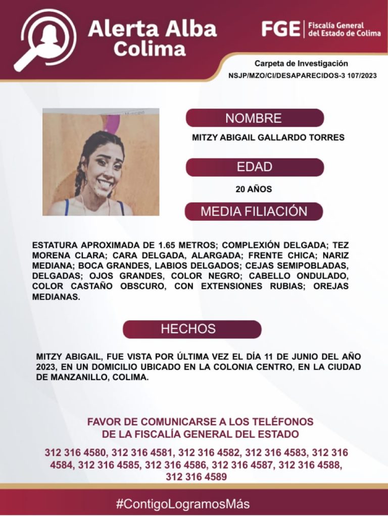 Favor de comunicarse a los teléfonos de la Fiscalía General del Estado. 312 316 45 83, 312 316 45 84, 312 316 45 85, 312 316 45 86, 312 316 45 87, 312 316 45 88, 312 316 45 89.