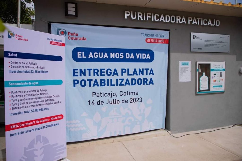 La planta potabilizadora se construyó con una inversión total de dos millones de pesos, aportados al cien por ciento por la empresa Peña Colorada; dicha acción beneficiará a más de mil habitantes de la comunidad de Paticajo.