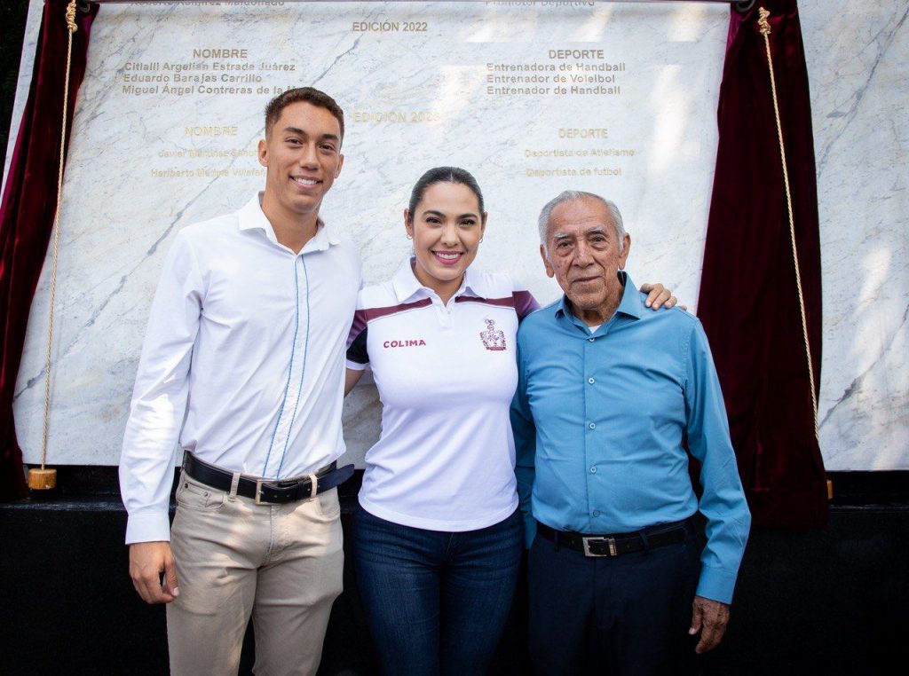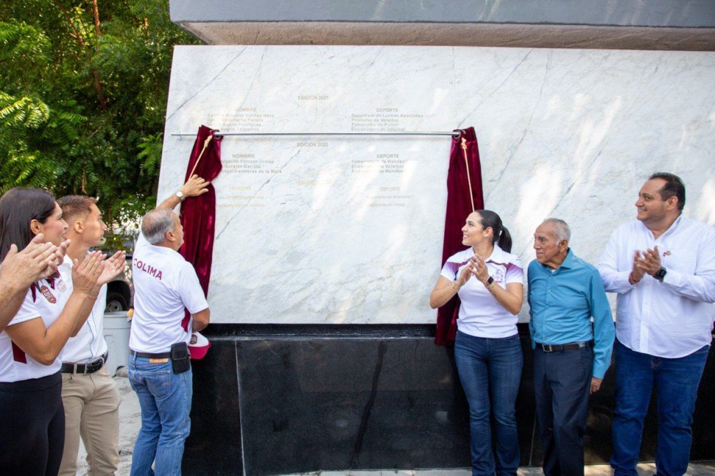 Indira devela nombres de Javier Martínez y Heriberto Medina en el Muro de Honor del Deporte Colimense