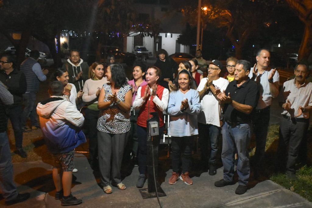 En la colonia Los Robles, la Alcaldesa entregó a vecinas y vecinos y puso en operación 22 luminarias LED en distintas vialidades, en sustitución de las antiguas lámparas de vapor de sodio, y fueron colocadas cuatro luminarias nuevas en el área verde.
