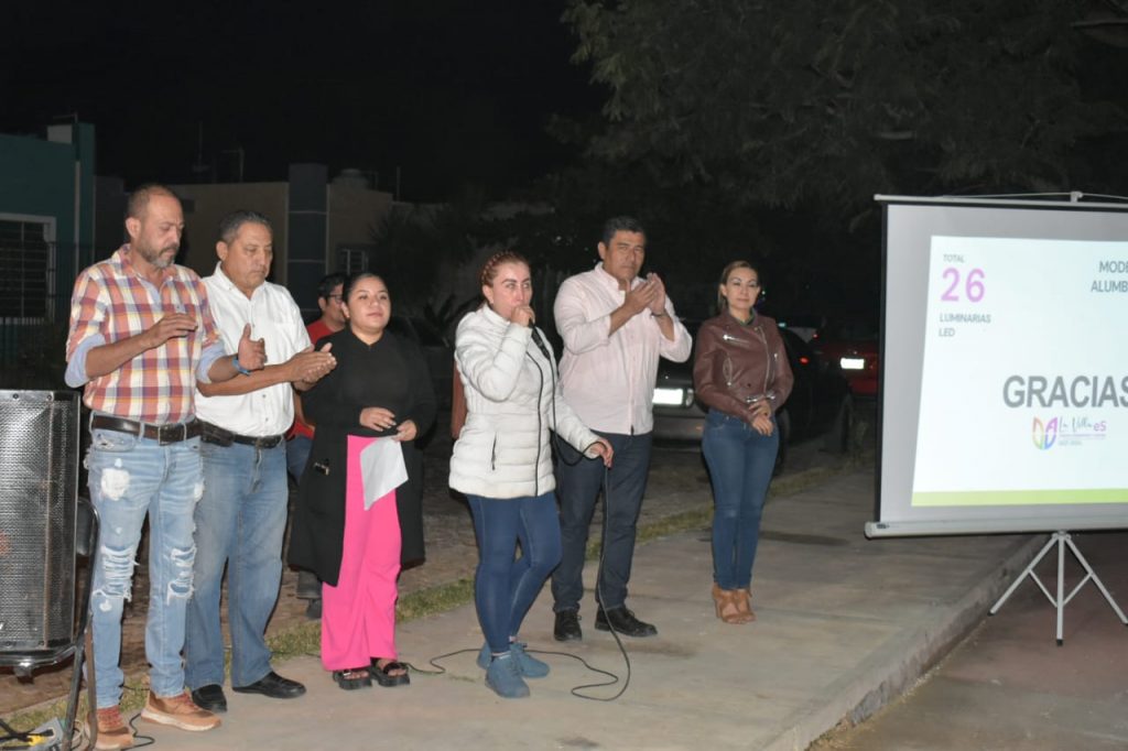 Villa de Álvarez, Col.- La Presidenta Municipal de Villa de Álvarez, Tey Gutiérrez Andrade, entregó las obras de modernización de la red de alumbrado público en las colonias Los Robles, Las Palomas y Vista Bugambilias, en ésta última además se entregó la rehabilitación del parque público.