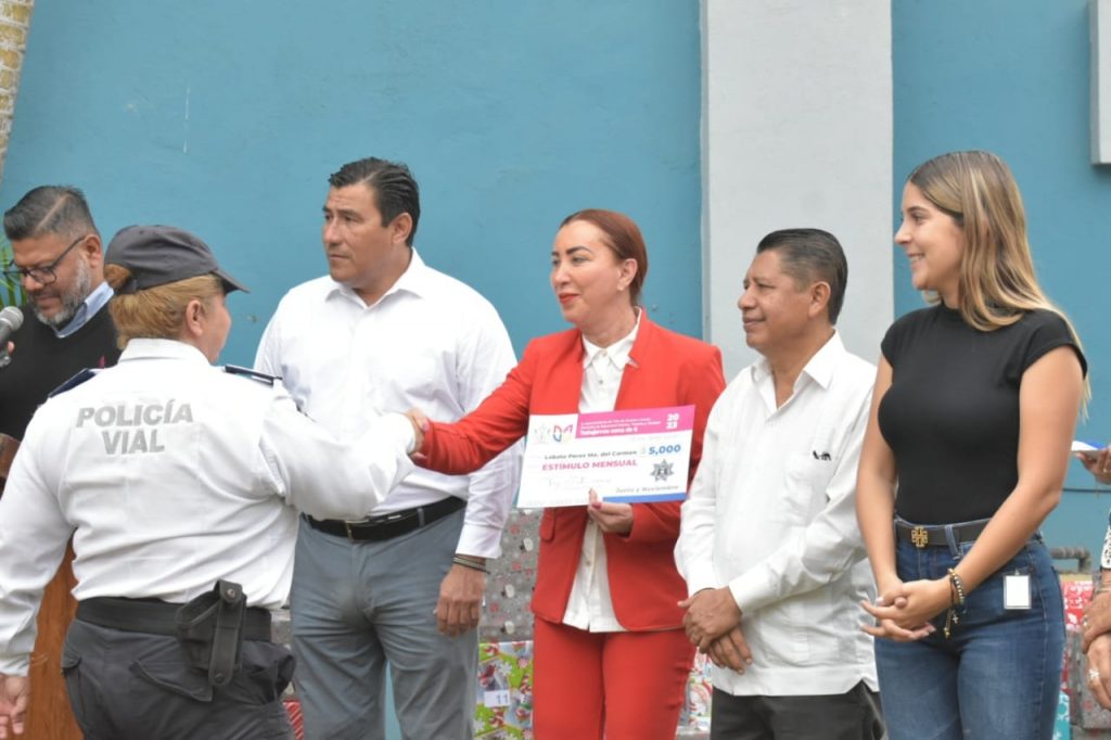 También Tey Gutiérrez entregó estímulos por eficiencia policial de los meses de junio a noviembre a 11 agentes, tanto de Seguridad Pública como de Tránsito y Vialidad.