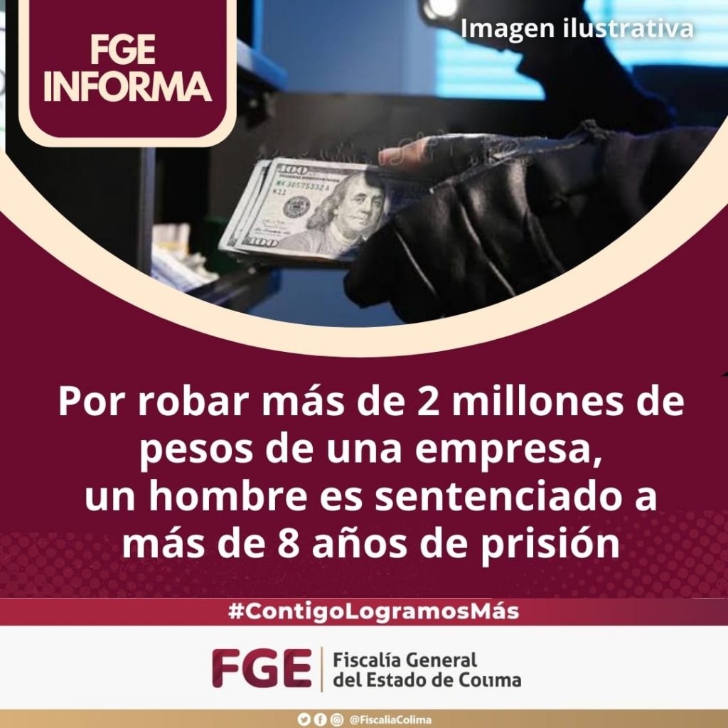 Por robar más de 2 millones de pesos de una empresa, un hombre es sentencia a más de 8 años de prisión