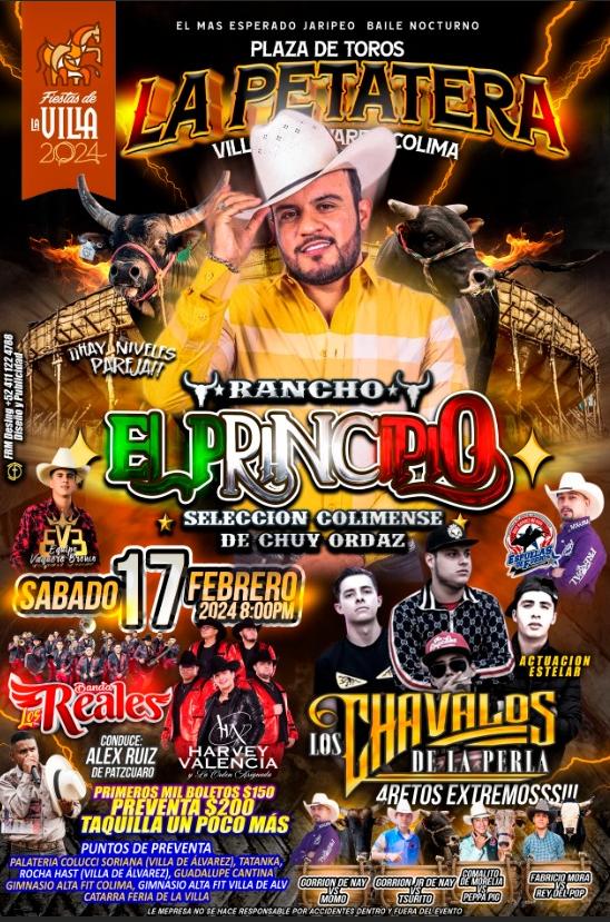Villa de Álvarez, Colima. – El sábado 17 de febrero a las 8n de la noche habrá un Jaripeo Baile Nocturno en la Plaza de Toros La Petatera, en donde se estará presentando la Selección Colimense de la Ganadería del Rancho El Principio, esto en el marco de la edición 167 de los Festejos Charro Taurinos de Villa de Álvarez 2024.