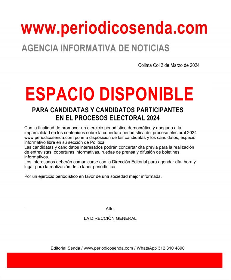 ESPACIO DISPONIBLE PARA CANDIDATAS Y CANDIDATOS DEL PROCESO ELECTORAL 2024