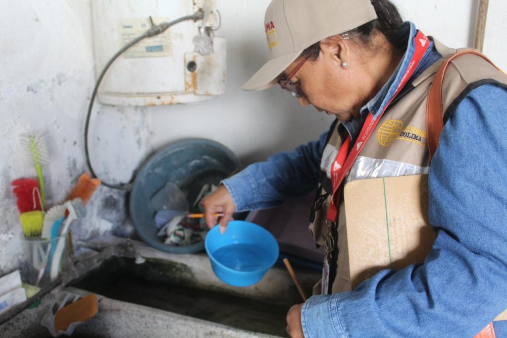 Con el propósito de reforzar el programa de combate al dengue y proteger la salud de la población en el estado de Colima, el personal de Vectores de la Secretaría de Salud realiza del 13 al 17 de mayo acciones de control larvario en viviendas de colonias y localidades de los cinco municipios de riesgo de esta enfermedad.