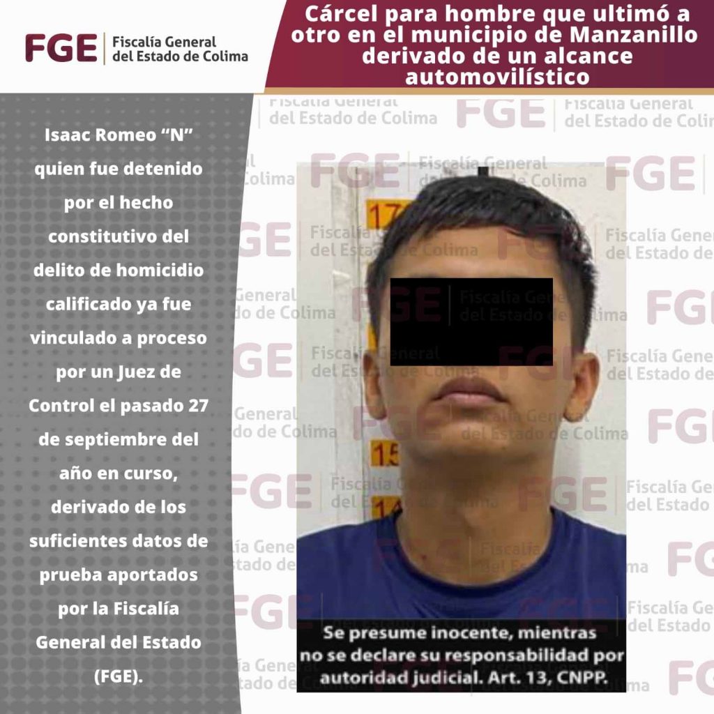 Cárcel para hombre que ultimó a otro en el municipio de Manzanillo derivado de un alcance automovilístico