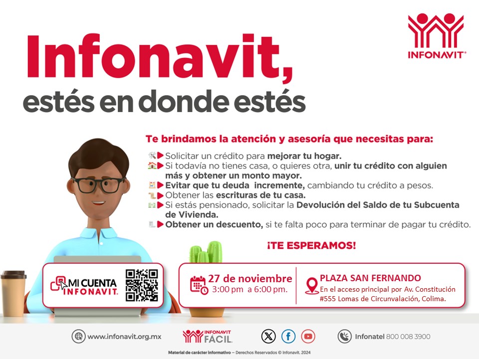 El Instituto del Fondo Nacional de la Vivienda para los Trabajadores (Infonavit) realizará su Brigada de Promoción y Servicio en Colima, para acercar su atención y productos a las personas, con el objetivo de apoyarlas en la construcción de su patrimonio.