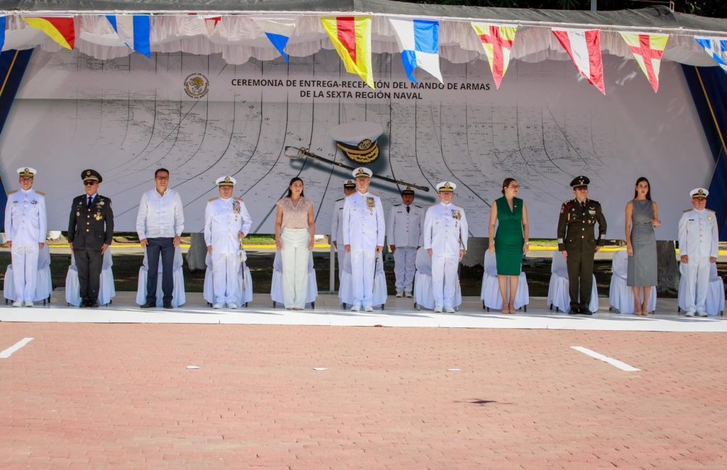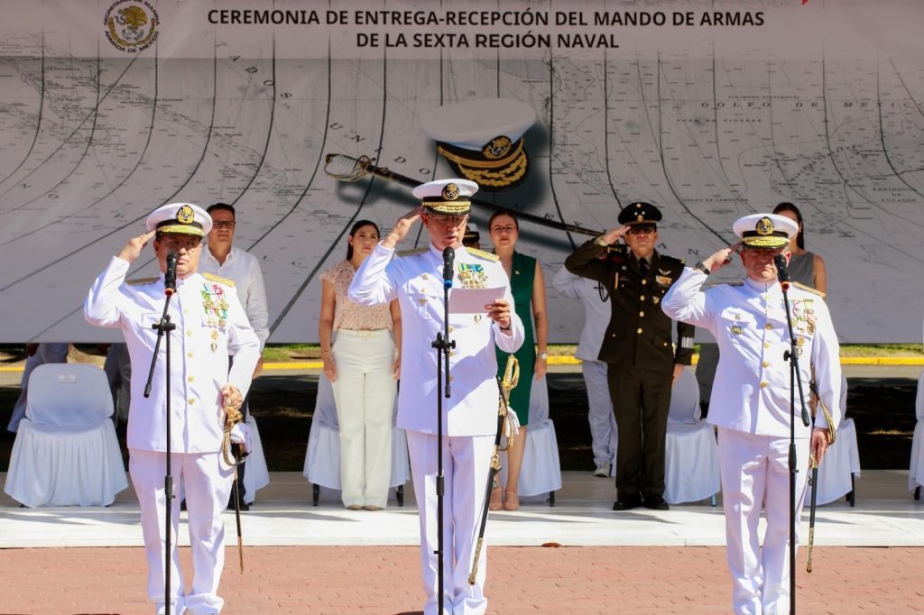 Durante la primera ceremonia, celebrada en la explanada principal de la Sexta Región Naval, dejó el cargo de comandante de dicha región, el vicealmirante Gabriel Alberto Báez López y lo asumió el también vicealmirante Jorge Víctor Vázquez Zárate, quien previamente se desempeñaba como comandante de la Segunda Región Naval.