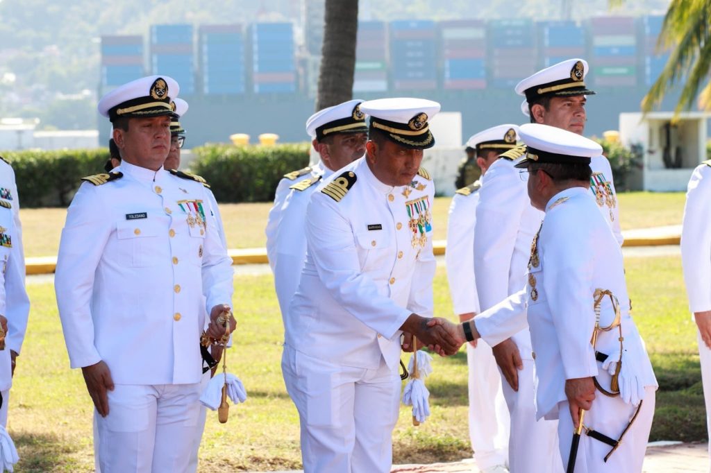 Posteriormente, a bordo de un buque de la Marina, se realizó la ceremonia de entrega-recepción de mando de armas de la Fuerza Naval del Pacífico, donde asumió el cargo de comandante el vicealmirante José Ramón López Luna -quien hasta hace poco estaba al mando de la Decimotercera Zona Naval-, en sustitución del contralmirante Mario Raúl Hernández Salgado.