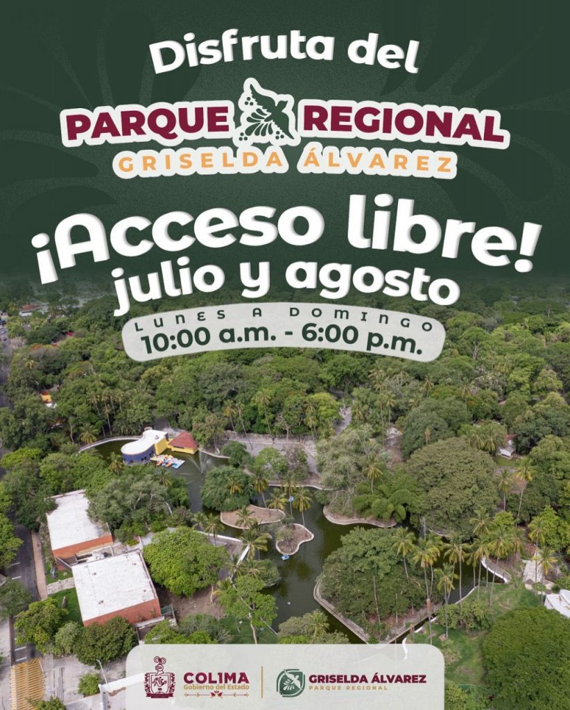 Tal como manifestó la mandataria Indira Vizcaíno, el acceso al #ParqueGriseldaÁlvarez y todas las actividades dentro de este mismo bosque urbano, serán gratuitas durante todo el mes de julio, como parte del compromiso de la administración estatal con el rescate y aprovechamiento de espacios públicos para el bienestar y disfrute de todas y todos los colimenses.