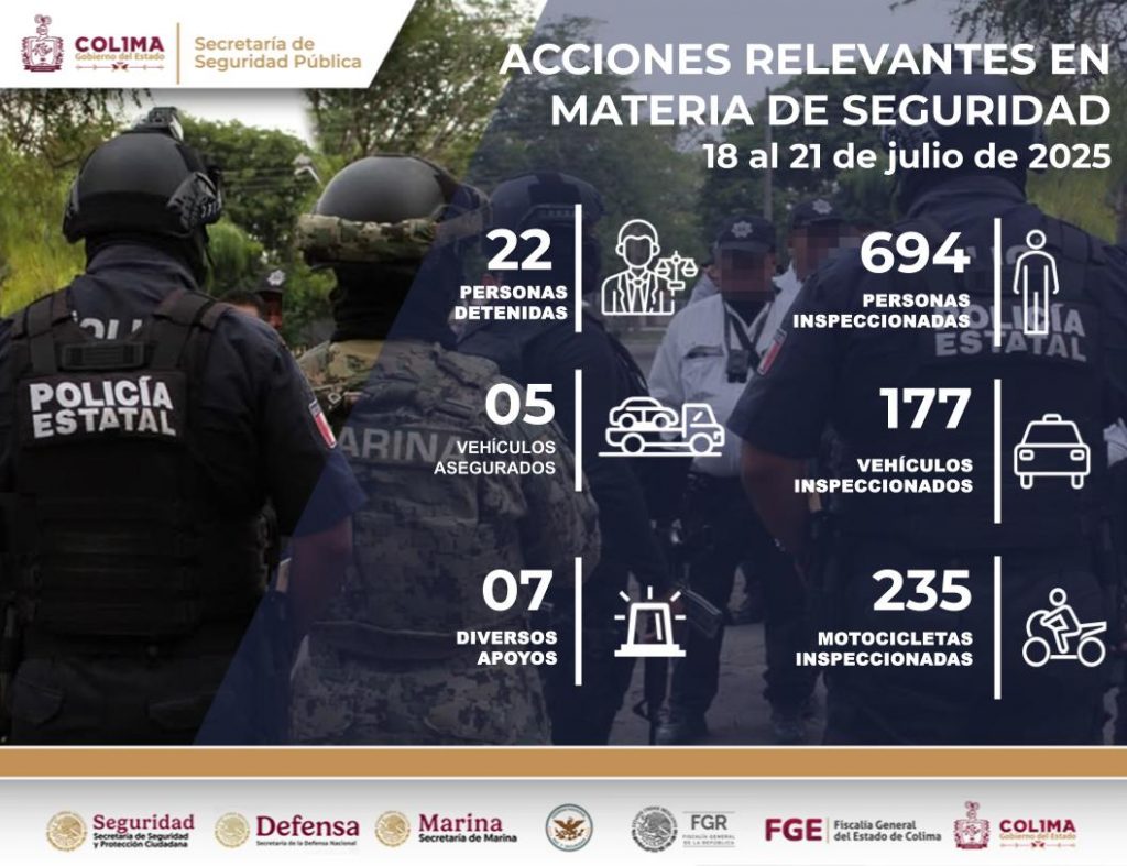 El Gobierno del Estado de Colima, a través de la SSP y la PEP, refrenda su compromiso de trabajar día y noche con responsabilidad, firmeza y coordinación interinstitucional para proteger a la población colimense.