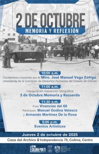 *Habrá una conferencia magistral. Una exposición fotográfica y un foro sobre las vivencias del ’68. Colima, Col., 29 de septiembre...