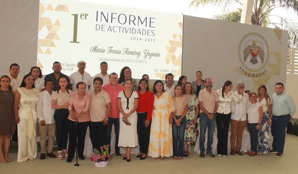 Este viernes 03 de octubre, María Teresa Ramírez Guzmán, Secretaria General del Sindicato de Trabajadores al Servicio del Honorable Ayuntamiento, DIF y Organismos Descentralizados de Villa de Álvarez, rindió su Primer Informe de Labores del periodo 2024-2028, dentro del marco del XLII Aniversario de la organización sindical, este evento se desarrolló en el Csino del SNTE VI, rumbo a El Chivato en Villa de Álvarez.