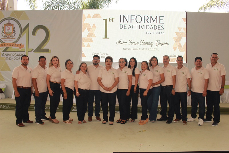 Este viernes 03 de octubre, María Teresa Ramírez Guzmán, Secretaria General del Sindicato de Trabajadores al Servicio del Honorable Ayuntamiento, DIF y Organismos Descentralizados de Villa de Álvarez, rindió su Primer Informe de Labores del periodo 2024-2028, dentro del marco del XLII Aniversario de la organización sindical, este evento se desarrolló en el Csino del SNTE VI, rumbo a El Chivato en Villa de Álvarez.