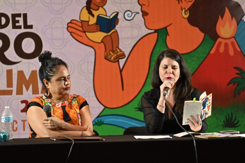 Natalia Toledo, junto a la escritora e investigadora de la Universidad de Colima, Krishna Naranjo, participó en la mesa redonda ‘Mujeres Creadoras’, un espacio de diálogo en el que Toledo habló ampliamente sobre los rituales culturales y sociales que persisten en su ciudad natal Juchitán, Oaxaca.