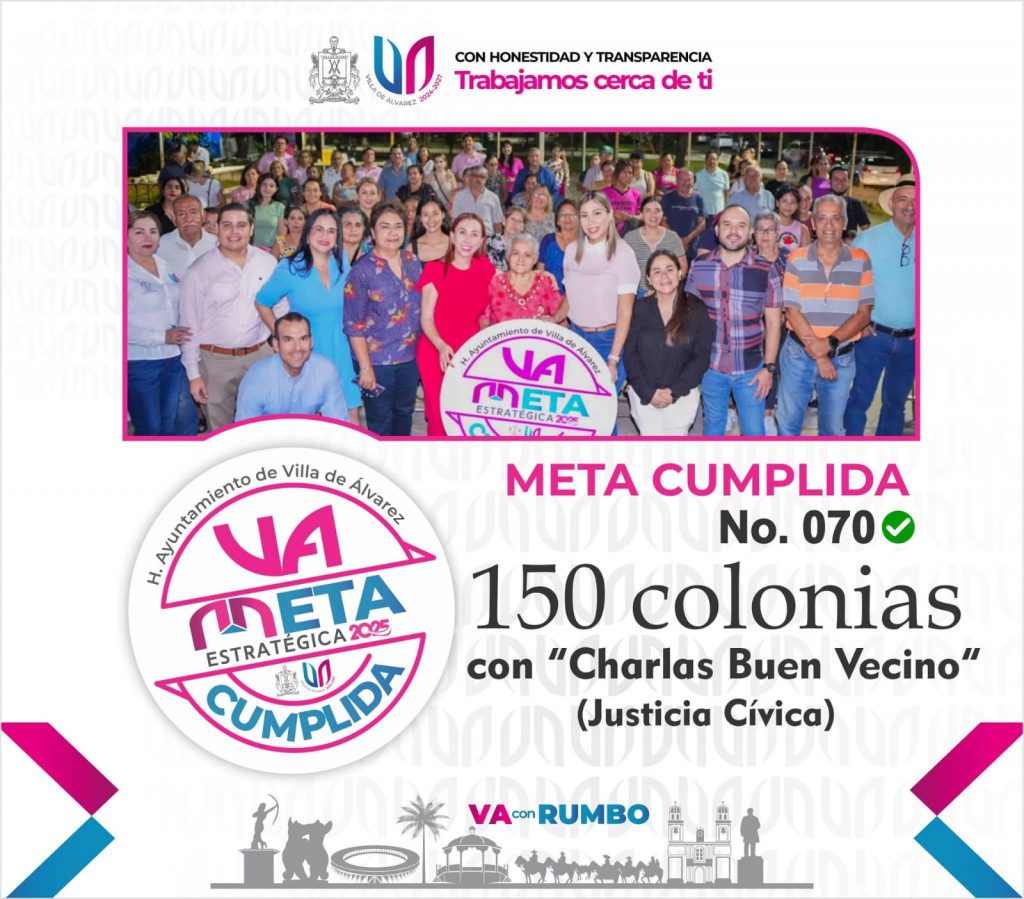 Villa de Álvarez, Col.- El Ayuntamiento de Villa de Álvarez cumplió una de las Metas Estratégicas del Programa de Gobierno del Año 2025, la de impartir 150 charlas del Buen Vecino en igual número de barrios y colonias de Villa de Álvarez.