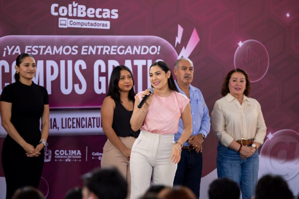Este lunes, la gobernadora Indira Vizcaíno Silva arrancó la entrega formal de ColiBecas Computadoras a estudiantes de nuevo ingreso a universidades públicas, programa estatal que por tercer año consecutivo llega a ese nivel educativo y que sólo este día reciben 2 mil 644 alumnas y alumnos de las distintas carreras de la Universidad de Colima.