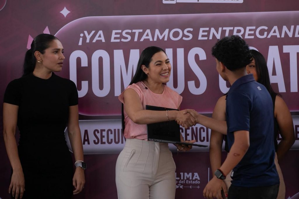 Indira Vizcaíno indicó que los equipos que están recibiendo son de buenas marcas, además de que se buscó que cuenten con todas las características necesarias para ayudarles a salir adelante en la etapa formativa que están viviendo; “y que lo hacemos con toda la convicción de que tenemos mucha fe en ustedes”.
