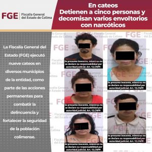 La Fiscalía General del Estado (FGE) ejecutó 10 cateos en diversos municipios de la entidad, como parte de las acciones permanentes para combatir la delincuencia y fortalecer la seguridad de la población colimense.