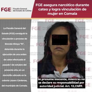 La Fiscalía General del Estado (FGE) consiguió la vinculación a proceso de Brenda Mireya “N”, detenida durante la ejecución de...