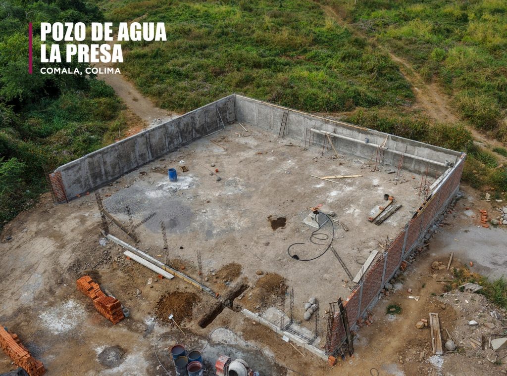 En la zona sur del municipio de Comala, se lleva a cabo el equipamiento, electrificación, línea de conducción, caseta de cloración y obra exterior del pozo profundo ‘La Presa’, el cual presenta un avance de 47% y beneficiará directamente a alrededor de mil 800 habitantes de la localidad, contribuyendo a mejorar la continuidad y calidad del suministro de agua potable.