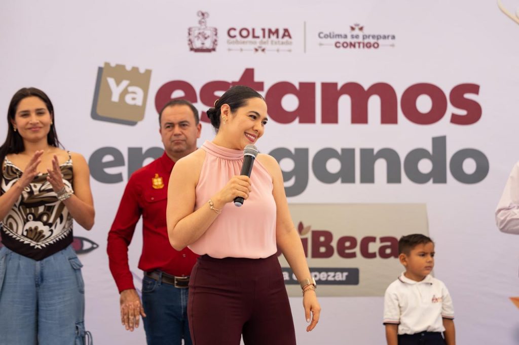 Este lunes, la gobernadora de Colima, Indira Vizcaíno Silva, entregó los medios de pago de Mi ColiBeca para Empezar a 472 estudiantes de nivel preescolar de Tecomán, junto otras autoridades estatales y municipales, así como diputadas locales; recordó que este programa forma parte de #ColiBecas, que integra una serie de becas para garantizar que las y los estudiantes puedan seguir preparándose, logrando que Colima sea el único estado donde todas y todos sus estudiantes desde preescolar hasta universidad reciben algún tipo de apoyo.