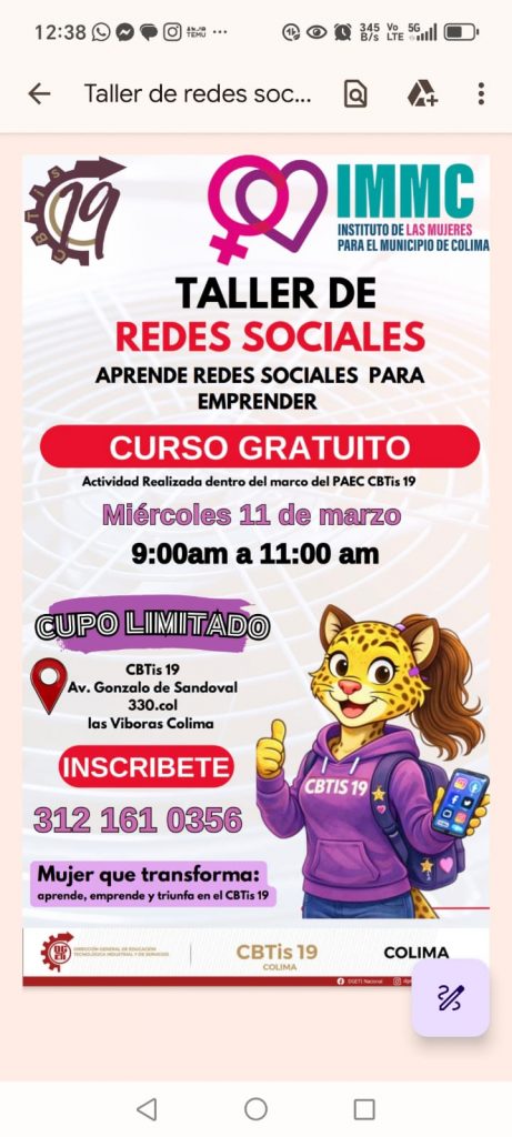 Colima, Col., 10 de marzo de 2026.- El Ayuntamiento de Colima que preside Riult Rivera Gutiérrez, a través del instituto de las Mujeres para el Municipio de Colima, en coordinación con el Cbtis 19, realizarán una serie se actividades conmemorativas del 8 de Marzo, Día Internacional de la Mujer.