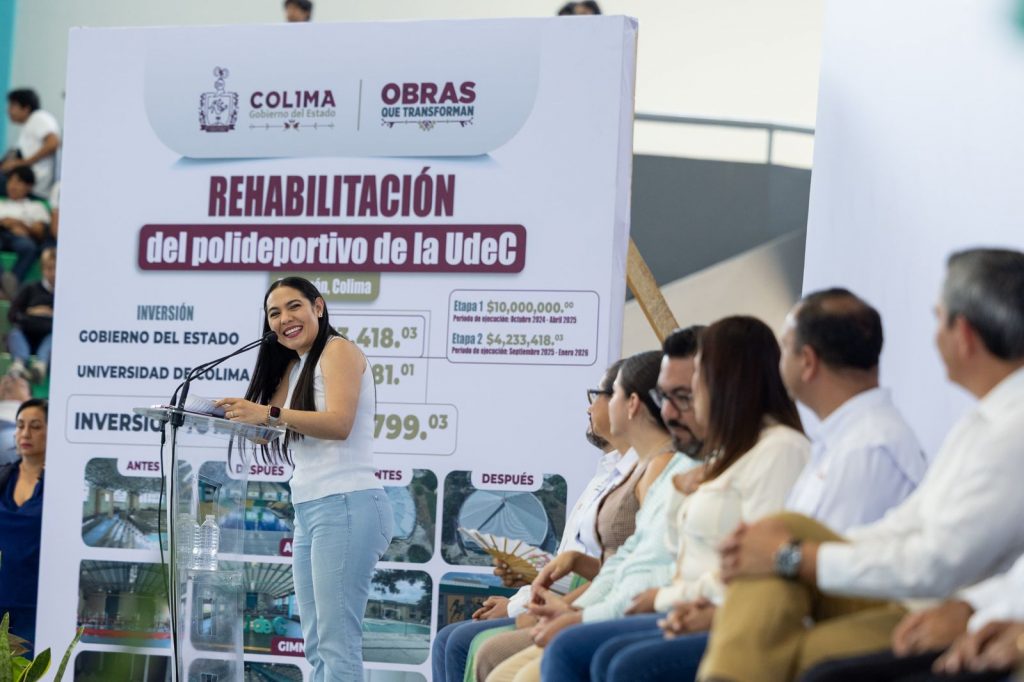 El rector de la Universidad de Colima, Christian Jorge Torres Ortiz Zermeño, compartió que el Polideportivo llevaba diez años sin poder usarse por el deterioro que presentaba, por lo que reconoció y agradeció a la mandataria Indira Vizcaíno por todo apoyo para la rehabilitación que incluyó el gimnasio y la cancha de futbol rápido, pues reconoció que el recurso con que contaba esta alma mater hubiera sido insuficiente para realizarla.