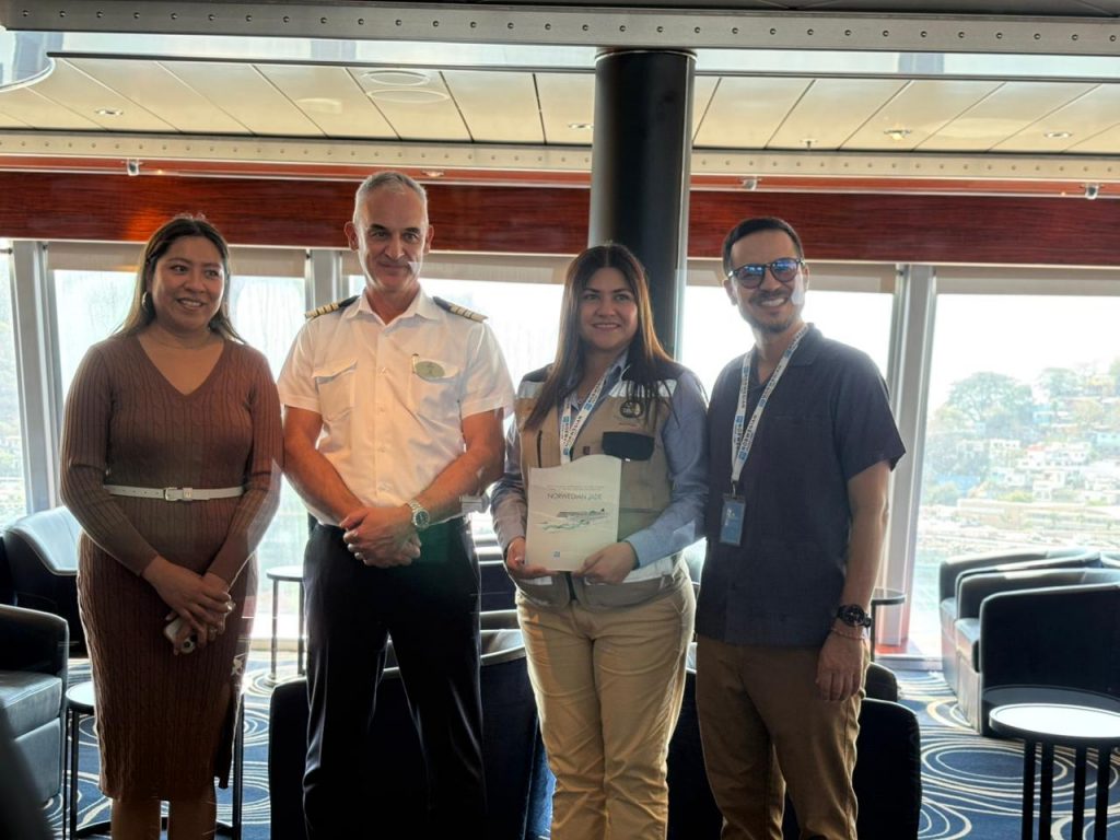 Durante la escala, se llevó a cabo una ceremonia de intercambio de placas a bordo, a la que asistió con la representación de la gobernadora Indira Vizcaíno Silva el subsecretario de Turismo Jorge Padilla Castillo, así como la directora de turismo del Ayuntamiento de Manzanillo, Mayreni Ortega Monroy, fortaleciendo los lazos institucionales y reconociendo la relevancia de esta primera visita, que abre la puerta a futuras recaladas en el puerto.