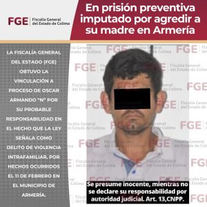 + Presuntamente agredió física y verbalmente a su madre dentro y fuera de su domicilio La Fiscalía General del Estado...