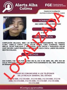 Ana Karen ya fue localizada. El Protocolo Alerta Alba agradece el apoyo de medios de comunicación y la colaboración de...